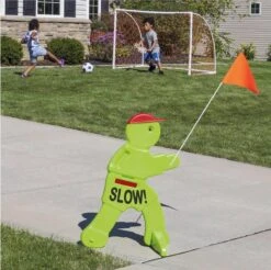 Victor Veilig Met Rode Waarschuwingsvlag – Verkeersmaatje / Verkeerspop In Fluoriserend Groen – Pas Op Spelende Kinderen Waarschuwingsbord Kid Alert