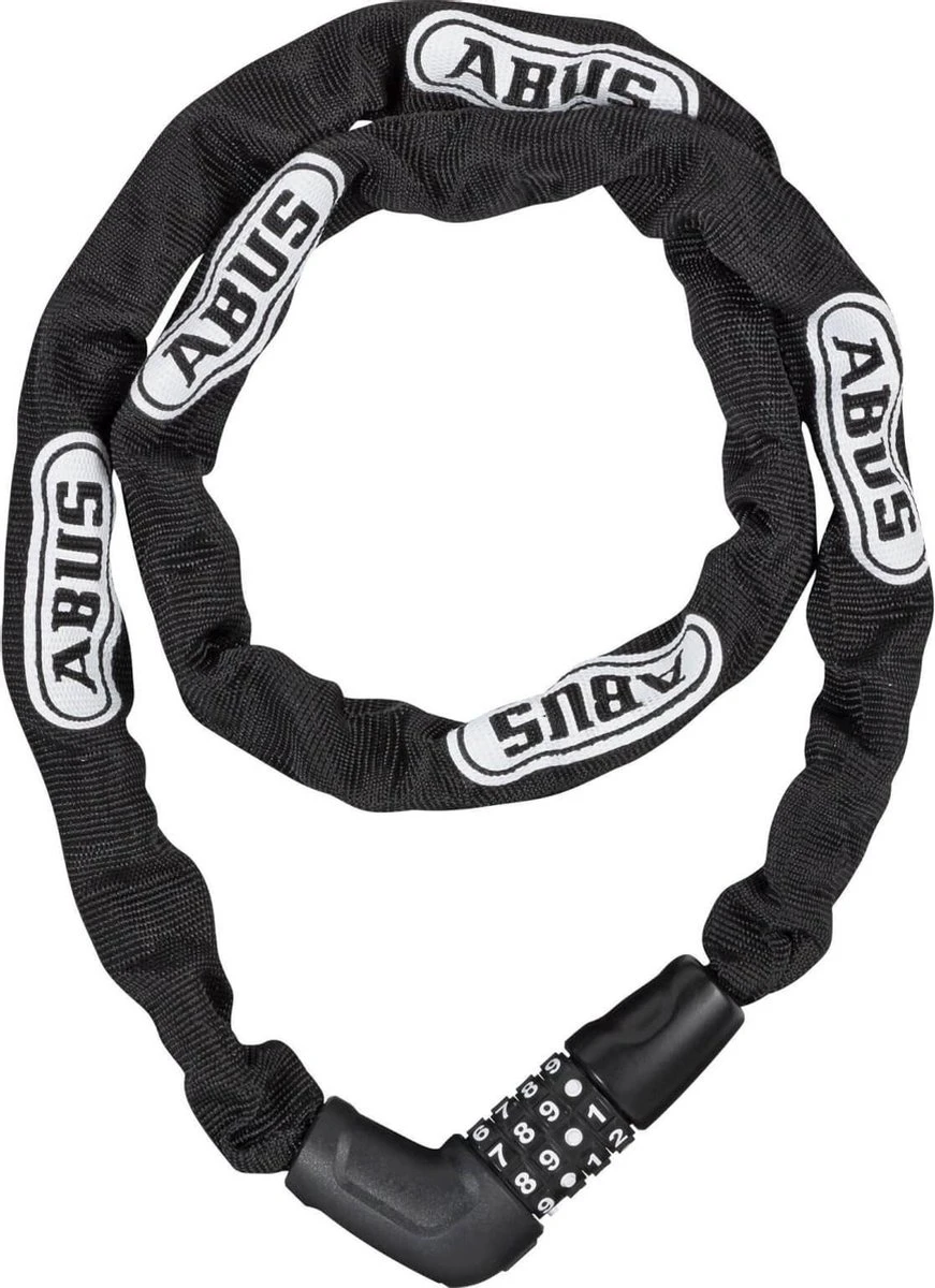 Stevig kettingslot met cijfercombinatie van het merk Abus. De ketting bestaat uit vierkante schakels van 5 mm groot met een kettinghoes, zodat het frame van jouw fiets niet beschadigd wordt. De cijfercombinatie is zelf in te stellen en de cijfers vervagen niet.