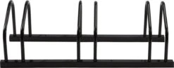 Het fietsenrek is gemaakt uit stevig zwart gepoedercoat staal. Het fietsenrek wordt geleverd als bouwpakket en zet je vliegensvlug in elkaar met het meegeleverde montagemateriaal en de handleiding. De drie beugels zijn geschikt voor fietsen met een maximale banddikte van circa 6.5 centimeter. Met een afstand van circa 25 centimeter tussen elke plek is er voldoende ruimte tussen de fietsen, zodat sturen en kabels niet in elkaar verstrikt raken. Inclusief bevestigingsmateriaal voor grond of muur. Het frame van het fietsenrek is voorzien van 4 schroefgaten. Het fietsenrek wordt inclusief 4 schroeven en 4 pluggen geleverd om het rek aan de grond of aan de muur te bevestigen.