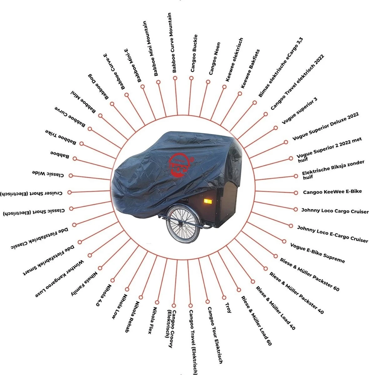 Geschikt voor o.a. (Twijfelt u of deze hoes geschikt is voor uw bakfiets, neem dan gerust contact op met onze klantenservice)