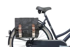 De Basil Bohè;me dubbele fietstas is een stijlvolle dubbele fietstas voor een damesfiets. Je koopt deze dubbele fietstas in houtskoolachtige kleur. Met een totale inhoud van 35 liter zijn de tassen bij uitstek geschikt voor het doen van boodschappen. Woon je niet zo ver van de supermarkt en laat je liever je auto thuis? Dan kan deze Basil Bohè;me dubbele fietstas goed van pas komen. Je hoeft niet meer met je boodschappentassen aan je stuur te fietsen, maar je stopt je inkopen gewoon in de tassen. Ook als je een langere fietstocht maakt, is het altijd interessant om een flesje water, een regenjas en een lunchpakket mee te hebben. Dankzij de fietstas hoef je geen zware rugzak meer mee te nemen. De Bohè;me dubbele fietstas is gemaakt van waterafstotend polyester en beschikt over een stevige binnenvoering. Je sluit de tassen gemakkelijk af door middel van een aansnoerkoord. De kunstlederen details zorgen daarnaast voor een stijlvolle uitstraling. Hoe je de tassen bevestigt? Dat is heel eenvoudig. Dankzij het Universal Bridge systeem bevestig je de tas eenvoudig op je bagagedrager. Ook op de bagagedrager van je elektrische fiets. Het Universal Bridge systeem bestaat uit vier gleuven. Deze gleuven maken het mogelijk om de tas op twee manieren te bevestigen: • Vaste montage: met behulp van de meegeleverde riempjes. • Afneembaar: in combinatie met een adapterplaat. Geschikt voor adapterplaten van MIK en Racktime platen. Deze adapterplaten dien je apart aan te schaffen. Eigenschappen: De waterafstotende coating zorgt ervoor dat de inhoud van de tassen tijdens een regenbui optimaal worden beschermd. Dankzij het volume van 35 liter is de dubbele fietstas niet alleen handig bij het doen van boodschappen, maar ook tijdens fietsvakanties. De reflecterende details zorgen ervoor dat je in het donker goed zichtbaar bent voor andere verkeersdeelnemers.