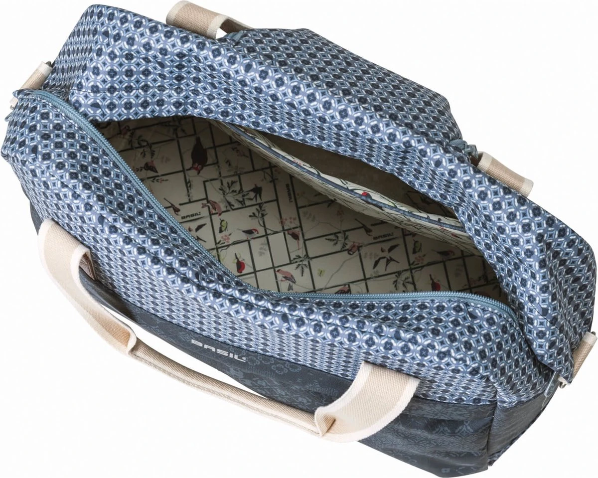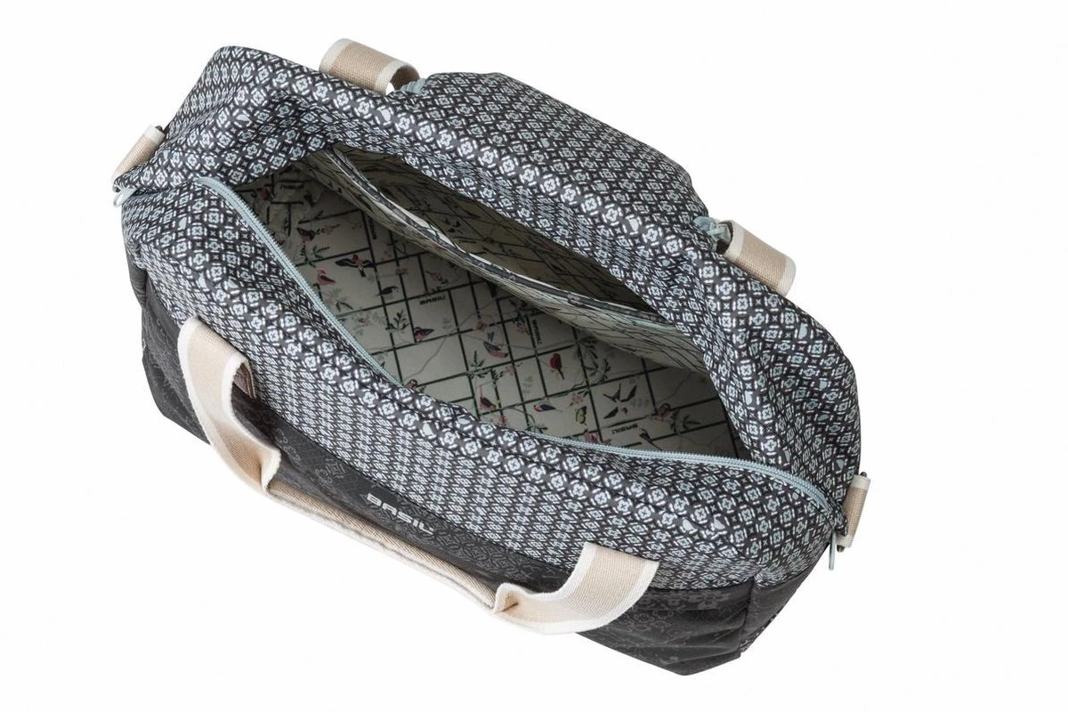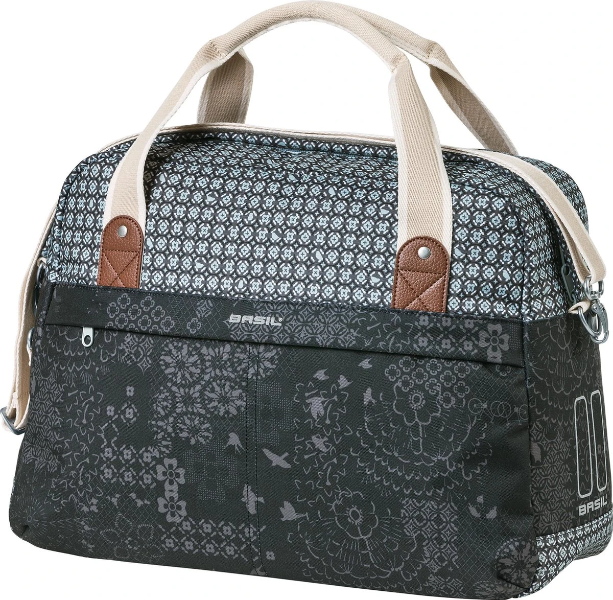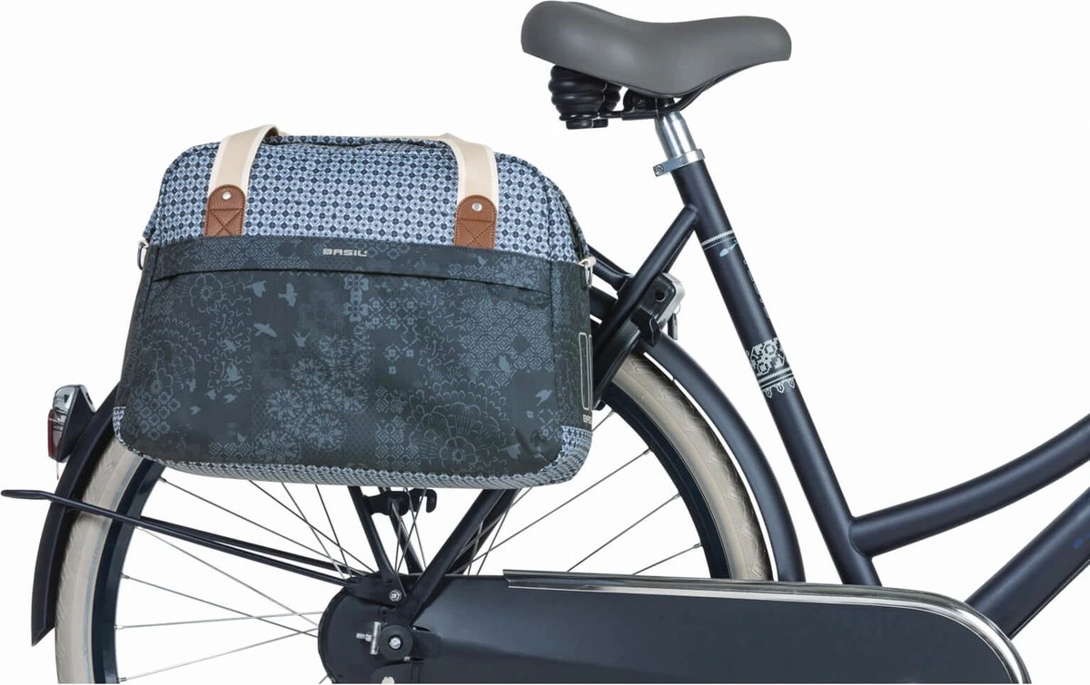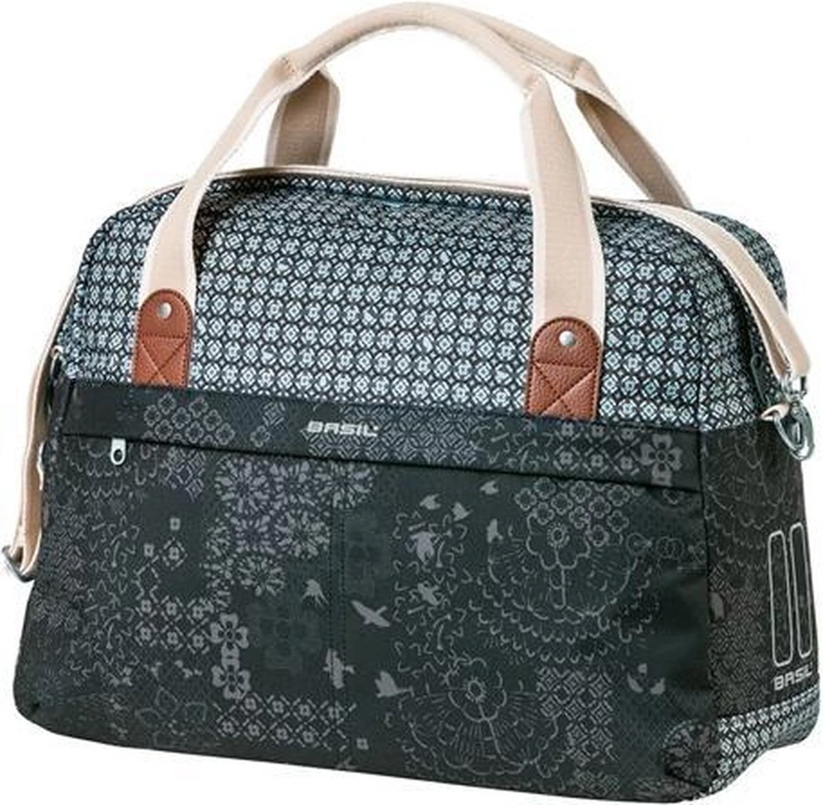 De Basil Bohè;me fietsschoudertas is een unieke fietsschoudertas in charcoal, een houtskoolachtige kleur. Deze fraai vormgegeven fietsschoudertas is gemaakt van waterafstotend polyester en komt bij diverse doeleinden goed van pas. De tas heeft een inhoud van 18 liter, waardoor je hem perfect kunt inzetten als boodschappentas. Hij komt ook goed van pas als je op zoek bent naar een stijlvolle tas om mee te nemen naar school of kantoor. De Bohè;me fietsschoudertas heeft een groot binnenvak en een voorvak. Dankzij een handige ritssluiting sluit je de tassen goed af en kan je zeker zijn dat je spullen niet op straat komen te liggen. De tas valt verder op dankzij de kunstlederen details, de afneembare schouderriem en de praktische draaghengsels. Dankzij het Hook On-systeem maak je de tas eenvoudig vast aan de bagagedrager van je (elektrische) fiets. De haakjes hiervan kun je netjes wegwerken achter het ritsvakje. Zo zien mensen niet eens dat je een fietstas bij je draagt als je de tas ergens mee naar binnen neemt. De fietsschoudertas kun je ook op je voordrager bevestigen. Naast deze mooie afpaktas zijn er bij Basil nog veel meer bijpassende producten voor je fiets te bestellen. Je treft het hele assortiment aan elders op de website. Eigenschappen: De Basil Bohè;me fietsschoudertas is gemaakt van waterafstotend polyester en heeft een inhoud van 18 liter. De fietsschoudertas bevestig je aan de bagagedrager van je fiets met behulp van het bijgeleverde Hook On-systeem. De tas is verkrijgbaar in een houtskoolachtige kleur. Deze fietsschoudertas van Basil heeft stijlvolle kunstlederen details.