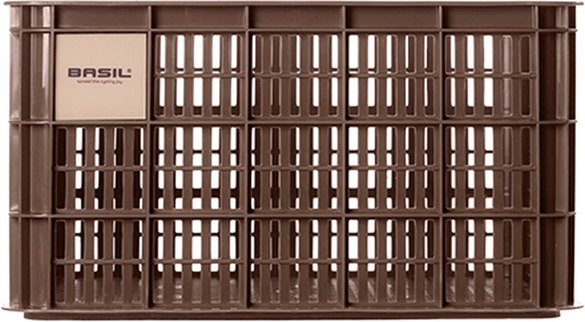 De Basil fietskrat in de maat L is een bruine fietskrat voor op een dames- of herenfiets. De fietskrat is gemaakt van duurzaam materiaal en heeft een inhoud van 40 liter.