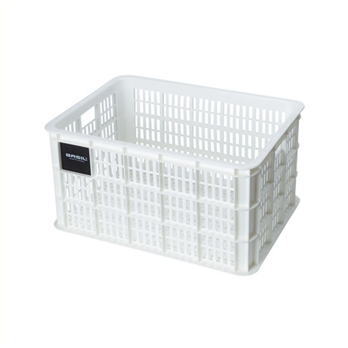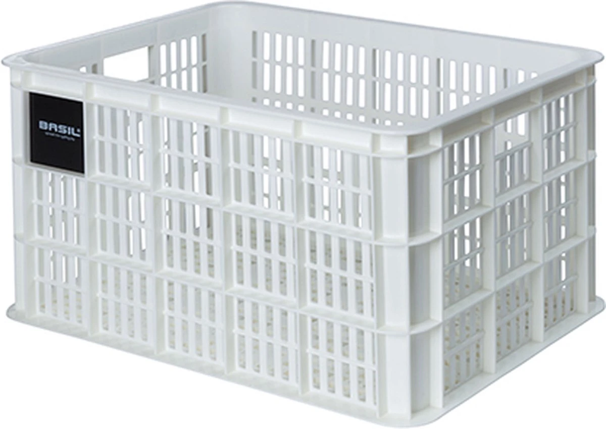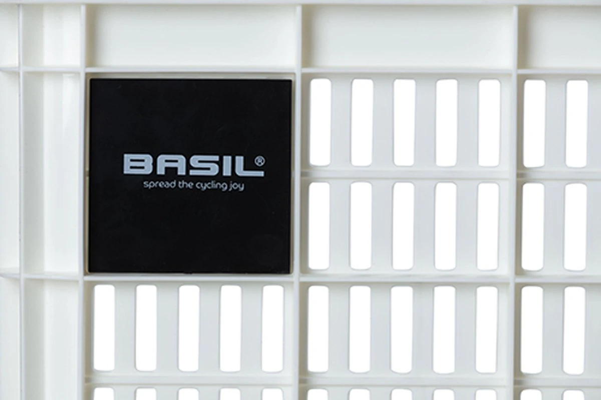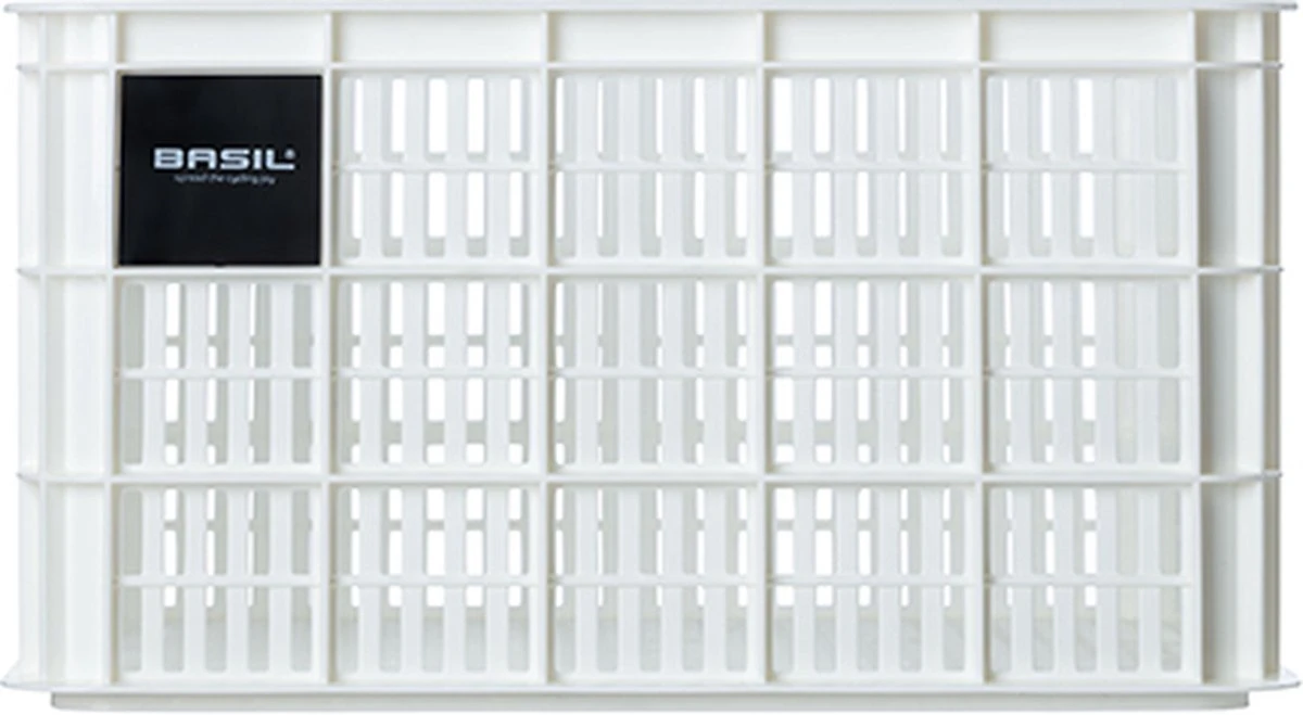 De Basil fietskrat in de maat L is een witte fietskrat voor op een dames- of herenfiets. De fietskrat is gemaakt van duurzaam materiaal en heeft een inhoud van 40 liter.