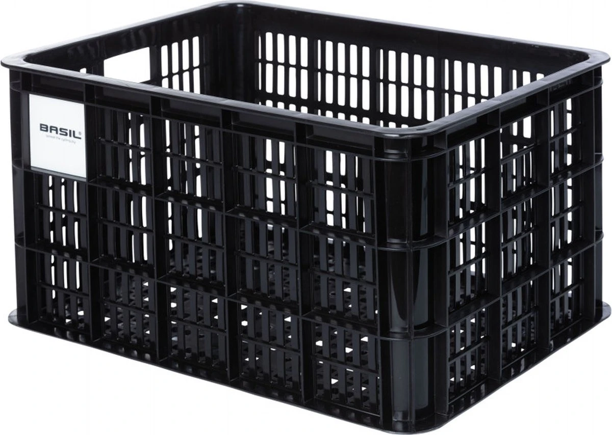 De Basil fietskrat in de maat L is een zwarte fietskrat voor op een dames- of herenfiets. De fietskrat is gemaakt van duurzaam materiaal en heeft een inhoud van 40 liter.