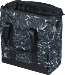 Met de Basil Grand fietsshopper wordt boodschappen of andere inkopen doen een feestje. Hij ziet er namelijk stijlvol en luxe uit, mede dankzij de zwarte kleur en de fleurige bloemenprint. Bovendien is hij gemaakt van waterafstotend 600D polyester en beschikt de shopper over een groot hoofdvak inclusief een gepolsterd (laptop)vak. Handig voor je studie aan de universiteit of voor je kantoorwerk. Met 23 liter inhoud kan je er dan ook de nodige boodschappen of andere spullen in kwijt. De tas is vormvast en dankzij de grootte kun je er met gemak pakken drinken staand in kwijt.