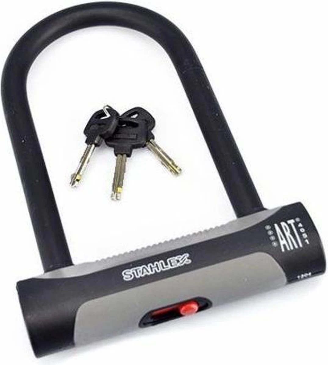 Beugelslot 448 ART**** gekeurd 180 x 245 mm Stahlex. Sterk gekeurd ART**** beugelslot voor fiets, scooter, brommer of motor. Het slot heeft een afdekschuifje voor bescherming tegen vuil en stof.