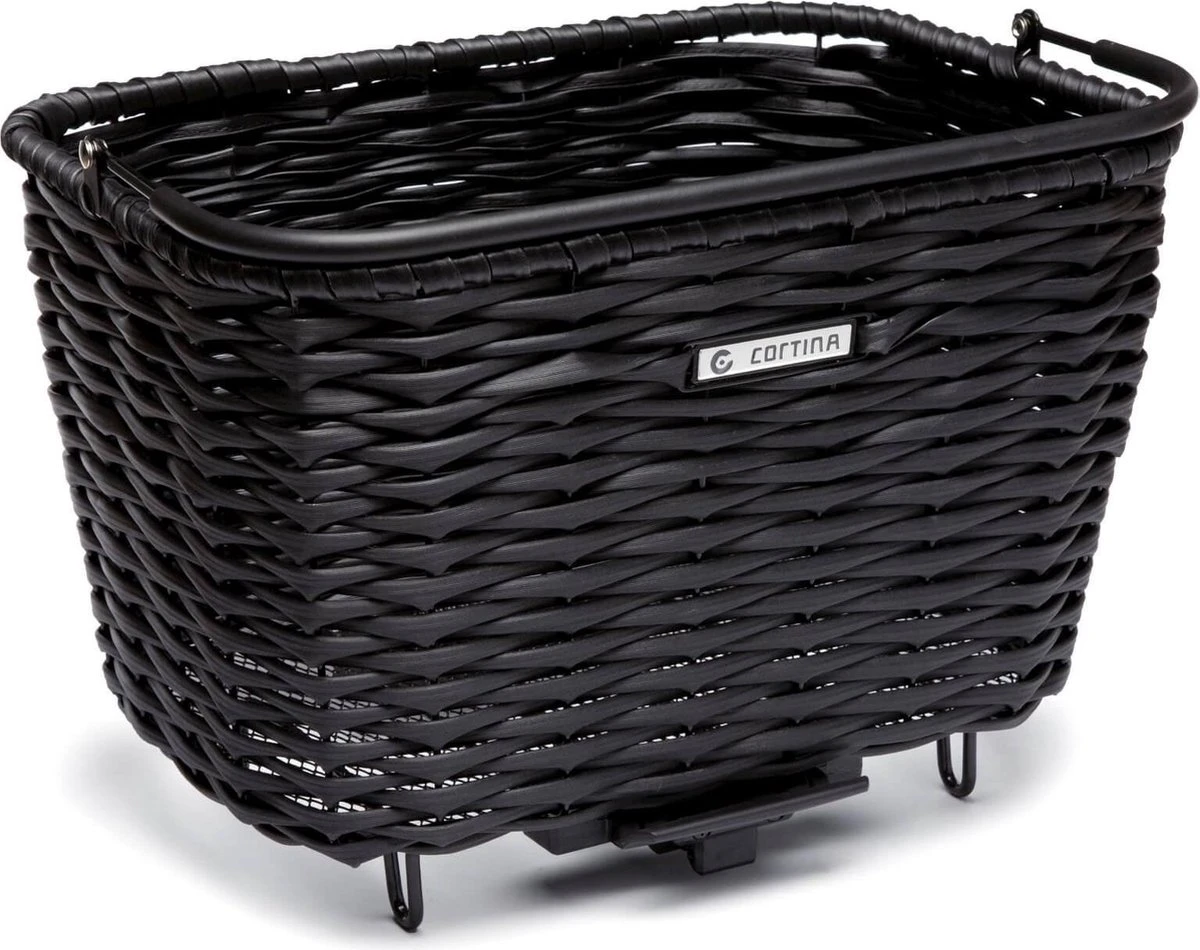 Rechthoekige mand met ronde hoeken gemaakt van wicker en voorzien van kliksysteem geschikt voor AtranVelo System (AVS) en passend op de Cortina Common voor- en achterdrager en de E-Octa achterdrager.
