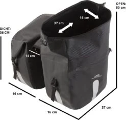 Het maakt niet uit of je een reguliere fiets, elektrische fiets of sportfiets hebt. Zolang je fiets een bagagedrager heeft dan is deze tas te bevestigen. Voor de beste bevestiging mag de bagagedrager niet breder zijn 14 cm. De tas plaats je op je bagagedrager met vier klittenbandlussen. Onderaan de beide tas zitten nog twee extra vergrendelpunten die je aan de bagagedragerstang kunt vastmaken voor extra zekerheid.