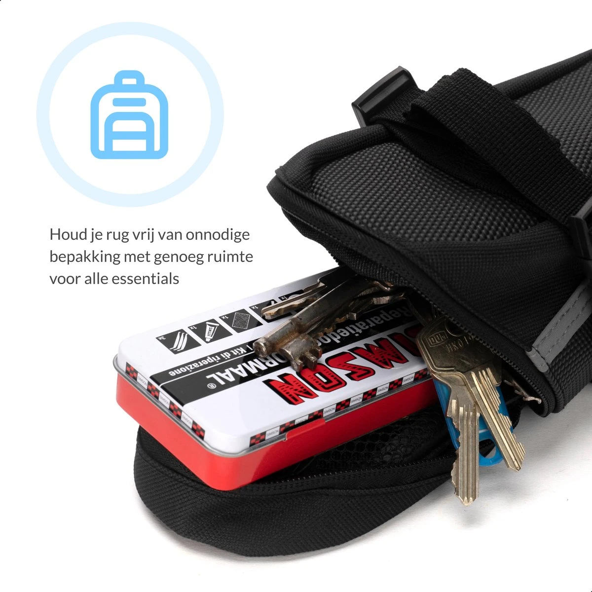 Hou essentials altijd en overal bij de hand. Met de Dyken Zadeltas hou je je rug vrij en ga je met een totaalgewicht van slechts 100 gram licht bepakt op stap. Ontworpen voor directe bevestiging, geschikt voor iedere fiets.