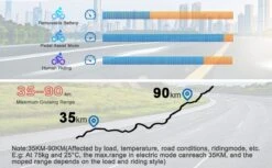 Uithoudingsvermogen: 35 KM-90 KM (beïnvloed door belasting, temperatuur, wegconditie, rijmodus, enz. Voorbeeld: bij 75 kg en 25°C kan het maximale bereik in elektrische modus 35 KM bereiken, en het bereik van de bromfiets is afhankelijk van de belasting en rijstijl)