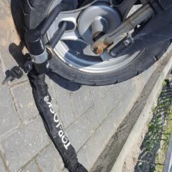 Ketting te dik om door het spaakwiel te halen? Gebruik dan hiervoor in de plaats het U-beugel hangslot. De beugel plaatst u om de spaak heen en met de ketting kan de tweewieler vervolgens ergens aan vastgezet worden. Zie Afbeelding als voorbeeld.