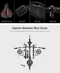 Ontwerp en opvouwbaarheid: het opvouwbare frame van de elektrische fiets is slim Dolphin Shape-ontwerp, handschacht met cirkelboogontwerp, opvouwbare stijl, voor draagbaar, gemakkelijk opbergen