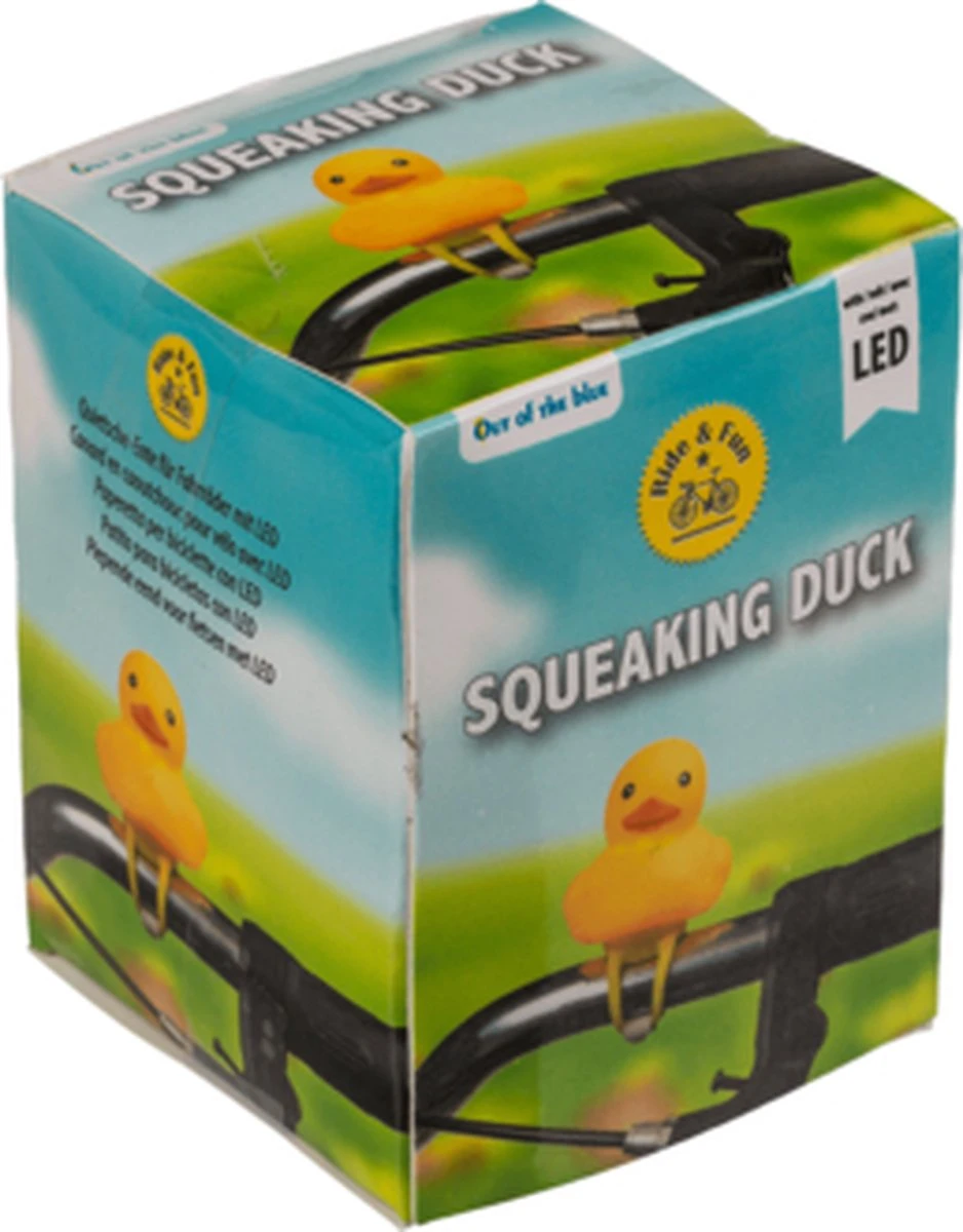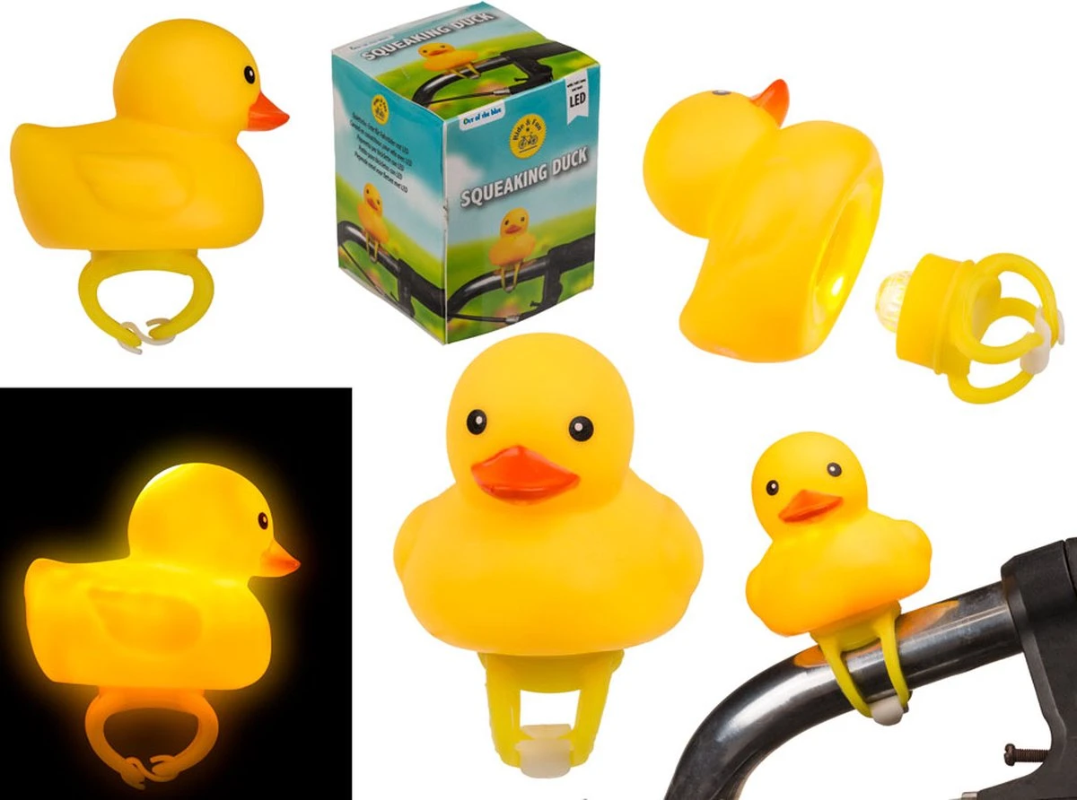 Ben je opzoek naar een fietsbel, maar wil je net even iets orginelers? Wat dacht je van deze piepende eend met LED licht voor op de fiets? Met deze vrolijke gele badeend pimp je jouw fiets. Je monteert het eendje heel eenvoudig aan je stuur. Door in het badeendje te knijpen begint hij vrolijk te piepen. Dus handig als bel te gebruiken. Door het LED lampje geeft het eendje ook nog eens licht. Zo ben je extra goed zichtbaar als je in het donker fietst. Bovendien brengt deze eend een lach op ieders gezicht als jij voor bij rijdt.