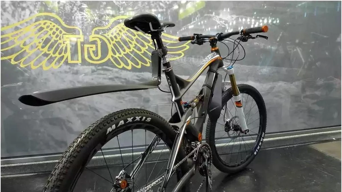Bestaande uit achterspatbord met zadelpen bevestiging. En een brede spatlap voor aan de onderste framebuis .