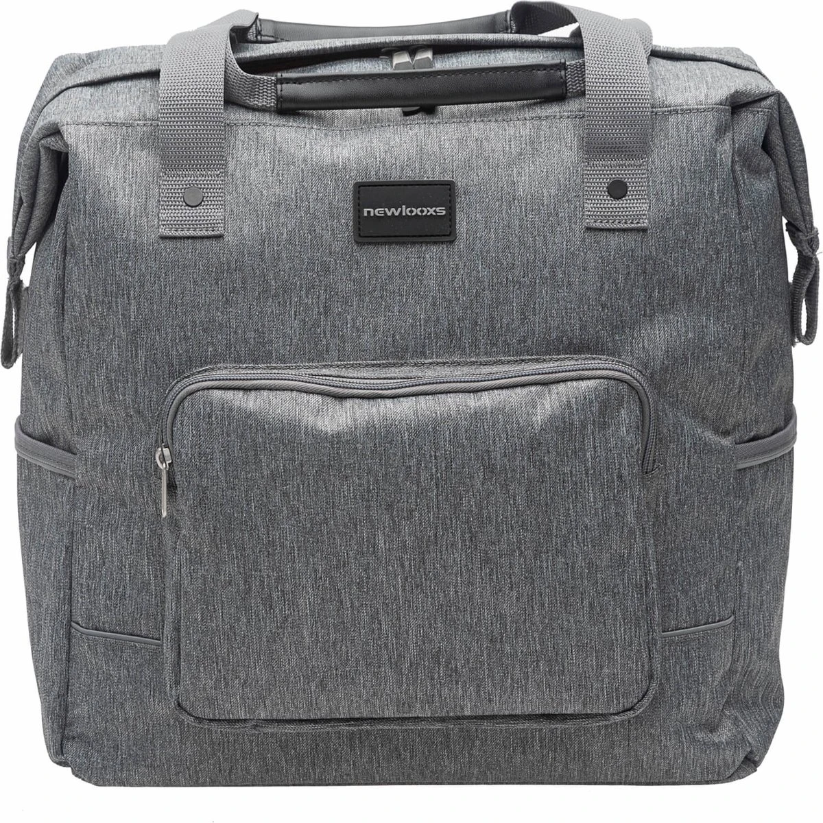 De fietstas wordt aan de bagagedrager bevestigd met New Looxs kunststof haken. Dat maakt deze tas geschikt voor vrijwel alle fietsen, ook elektrische. Je kunt de tas extra vastzetten met het klittenbandje tussen de haken. Als je de tas van de fiets haalt, dek je de haken af met een ritsvakje. Hierdoor heb je geen last meer van de haken en ziet de tas er uit als een gewone shoppertas!