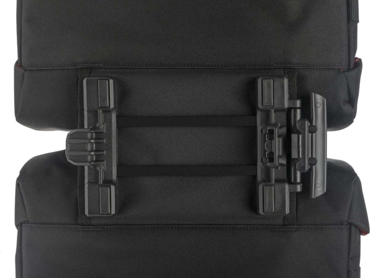 Het voordeel van het Atran bevestigingssysteem is dat de tas altijd goed bevestigd is op de bagagedrager. Daardoor blijft de tas goed zitten en hangt deze altijd mooi recht. Je kunt de fietstas extra vastzetten aan de zijkant van de bagagedrager met een klittenband riempje.