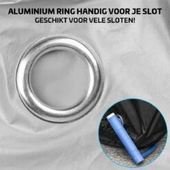 De Nince fietshoes is gemaakt van duurzaam materiaal en heeft een handig slotgat waarmee je je fiets veilig kunt vastmaken. De fietshoes schrift dieven af en belemmerd fietsdiefstal zo goed als mogelijk. De rand van de fietshoes is voorzien van dubbel gestikte elastische zoom zodat de hoes altijd de perfecte pasvorm heeft. De gesp is van hoogwaardig materiaal gemaakt en zorgt ervoor dat je de fietshoes strak om je fiets kunt bevestigen.
