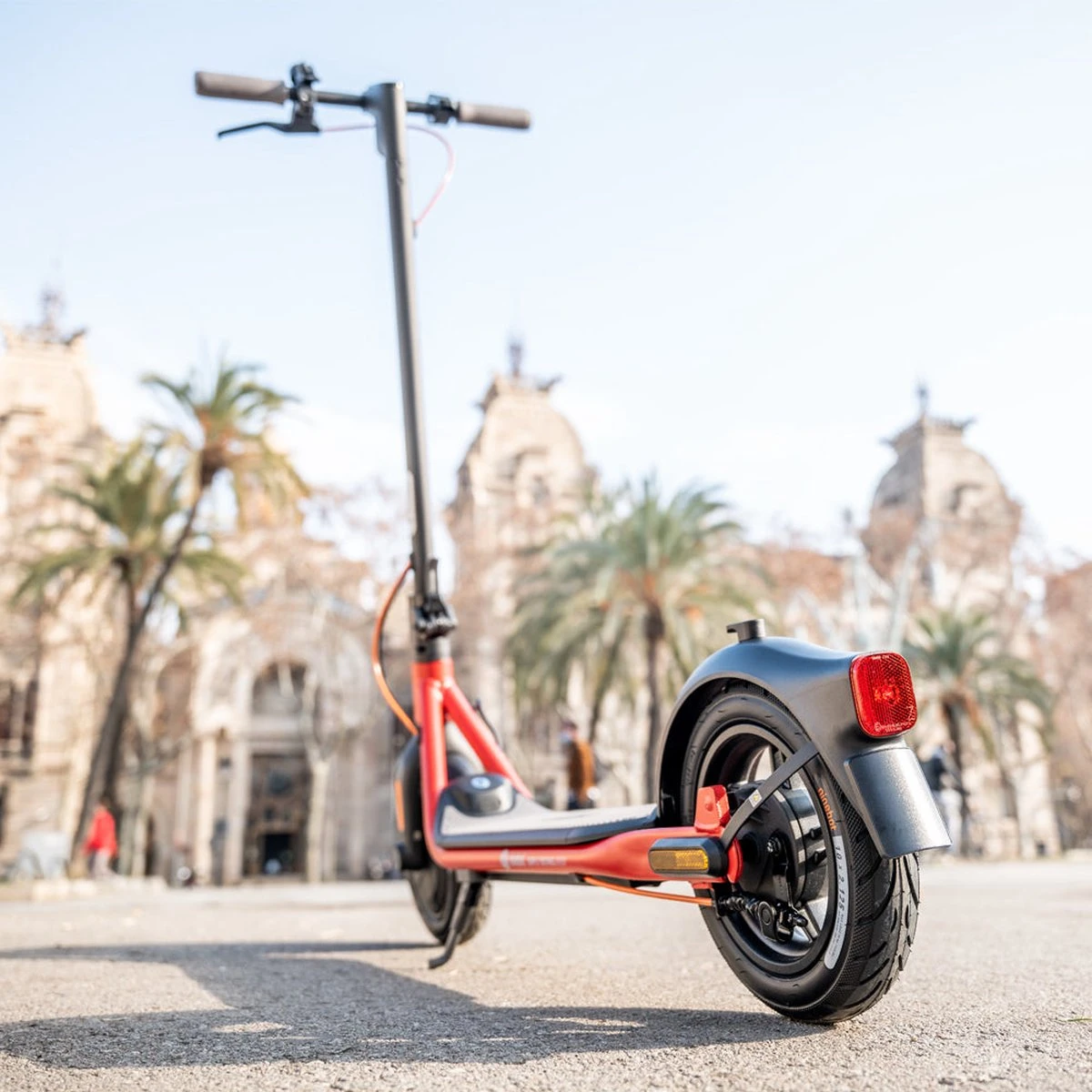 De KickScooter heeft 10-inch luchtbanden met een sterke binnenband van polymeer en waterbestendige draden, voor stabiliteit en duurzaamheid. De KickScooter is ook voorzien van twee onafhankelijke remmen die worden bediend door één handrem. Een elektrische rem voor en een trommelrem achter.