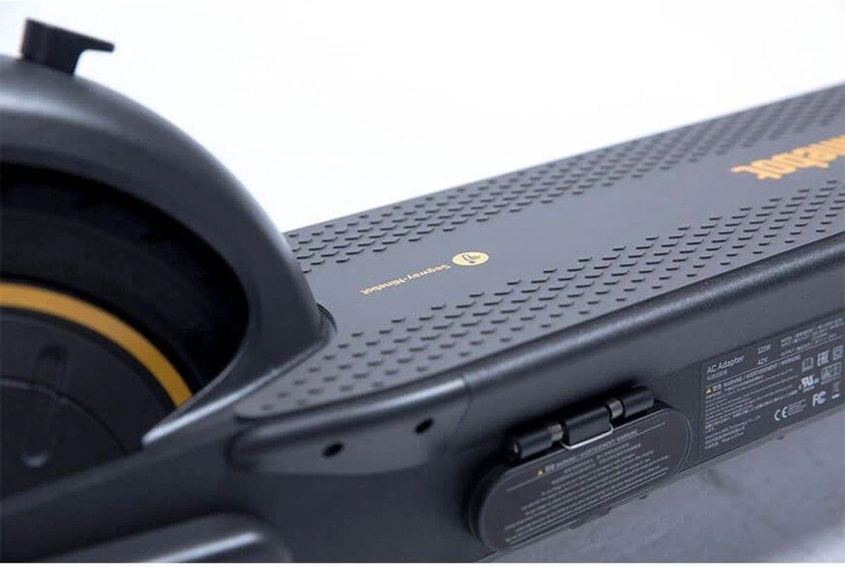 De Kickscooter Max van Segway komt met een 551Wh batterij waarmee je tot 65 km ver kunt rijden. Hierdoor hier je jezelf geen zorgen meer te maken of je de eindbestemming wel haalt. Daarnaast beschikt de step over een geïntegreerd snellader van 3A welke met de tweede externe oplaadpoort zelfs kan snelladen tot 5A. Doordat de snellader geïntegreerd is hoeft je geen complete oplader meer te gebruiken en heb je enkel de oplaadkabel nodig. Hierdoor kun je de step overal binnen mum van tijd weer opladen. De geïntegreerde oplader en grotere accu maken de Ninebot Max wel een stuk zwaarder dan zijn voorgangers, de step weeg 21 kg.