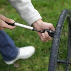 Deze fietspomp van Orange85 is ideaal om mee te nemen wanneer je een stuk gaat fietsen. De handpomp is 25 centimeter lang en past makkelijk in een tas. De pomp is zwart met zilver.