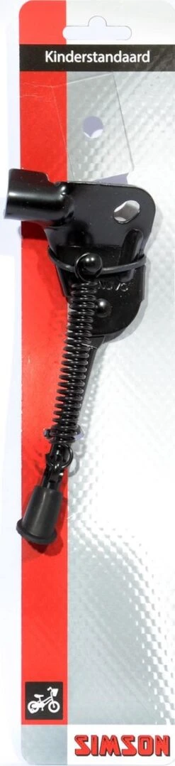 De Simson kinderstandaard is geschikt voor de meeste 12 inch kinderfietsen en kindersteppen. De kunststof voet zorgt voor extra stabiliteit van de fiets als deze op de standaard staat. De standaard heeft een zwarte kleur en is voorzien van een veer waardoor hij eenvoudig in- en uitklapbaar is. Bevestig de standaard met behulp van een inbussleutel aan de achteras van de fiets Productspecificaties: Kinderstandaard Achteras montage 12″
