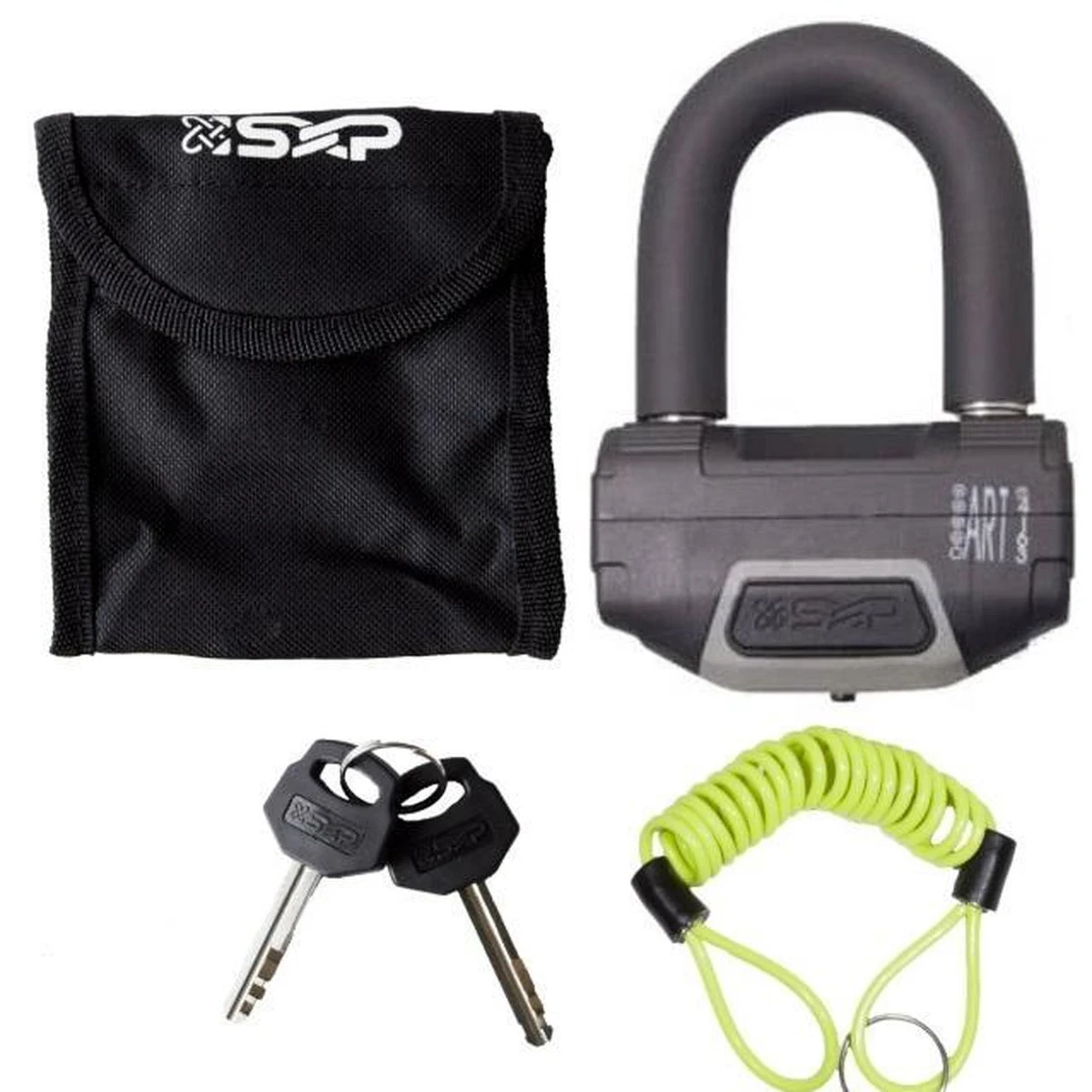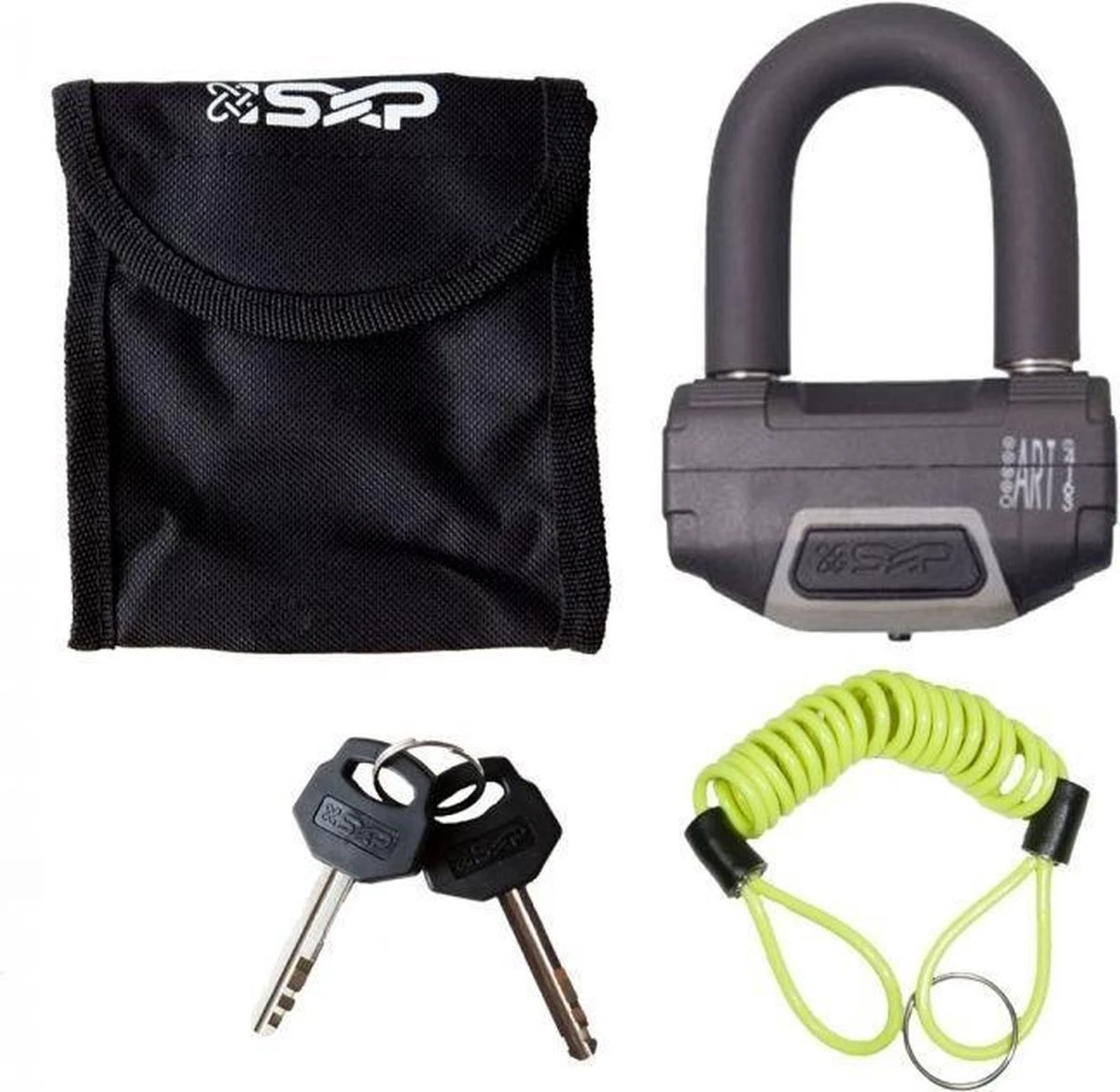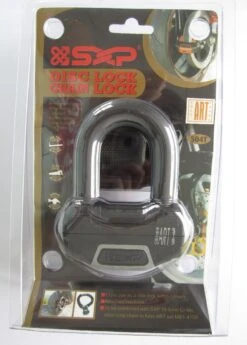 Het schijfremslot van SXP is een zeer makkelijk te gebruiken slot op de schijfrem, waardoor een motor of scooter beveiligd kan worden tegen diefstal. Door het ART 4 keurmerk is het schijfremslot goedgekeurd voor een diefstalverzekering van scooters en brommers. Ook is het slot goedgekeurd voor de meeste diefstalverzekeringen voor motoren. Informeer echter wel altijd naar de specifieke voorwaarden die de verzekeraar hanteert. Door het compacte formaat van het SXP schijfremslot is het slot gemakkelijk op te bergen in een jaszak. Hierdoor kan de motor of scooter op ieder gewenst moment worden beveiligd tegen diefstal. Het SXP slot wordt standaard geleverd met handig opbergtasje en reminderkabel.