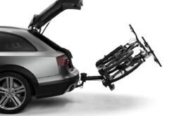 De Thule EasyFold XT 933 Black is gelijk aan de Thule EasyFold XT 933 echter heeft de Black versie een aantal zwarte details zoals op het frame en de afneembare frameadapter voor een unieke uitstraling. De Black is tevens extra compleet; standaard wordt de opbergtas voor extra bescherming meegeleverd samen met de velgbeschermers om de velgen van de fietsen tijdens het vastzetten te beschermen. De Thule EasyFold XT 933 Black is een volledig opvouwbare, compacte en gemakkelijke te gebruiken fietsendrager geschikt voor het vervoeren van 2 fietsen. De Thule EasyFold XT 933 Black is zeer geschikt voor e-bikes gezien zijn laadvermogen van 60kg. Echter passen ook alle overige soorten fietsen perfect. De fietsendrager en de fietsen zijn alle af te sluiten. De fietsendrager stabiliseert zich op de trekhaakkogel wat montage op de trekhaak zeer gemakkelijk maakt. De fietsen worden vastgezet met de afneembare zwarte frameadapters welke zijn voorzien van een koppelbegrenzer zodat u weet dat de fietsen vast staan. De pompgespen met extra lange straps kunnen wielen van maximaal 4.7inch vastzetten. De Thule EasyFold XT 933 Black is kantelbaar door middel van het voetpedaal. Kantelen kan tevens met de fietsen op de Thule EasyFold XT 933 Black wat de toegang tot de kofferruimte vergemakkelijkt. In opgevouwen staat is de Thule EasyFold XT 933 Black handig te vervoeren door de geïntegreerde handgrepen.