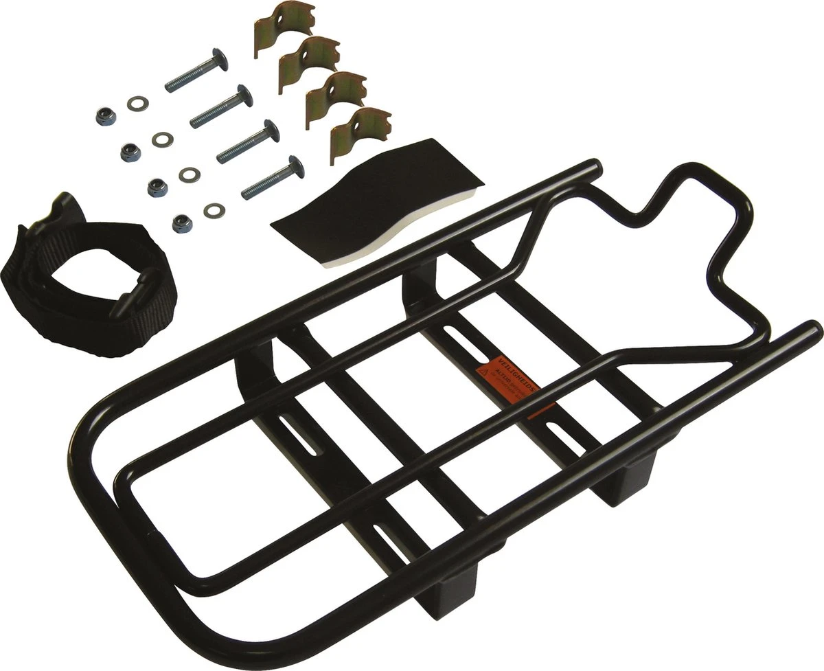 Het aangeschafte kinderzitje past niet op de bagagedrager van uw fiets! Wat nu? De Universele Adapter van Steco biedt u de oplossing! Door eerst de Universele Adapter op de bagagedrager te monteren, ontstaat er een niewe basis voor de montage van bijna alle merken kinderzitjes (Yepp, Bobike, Polisport, Qibbel enz.). Dit product is niet alleen voor kinderzitjes bestemd, maar ook voor de Steco Baby-Mee Bike en Buggy-Mee de Luxe. Er wordt standaard een veiligheidsband meegeleverd bij de universele adapter, welke om de zadelpen bevestigd dient te worden.