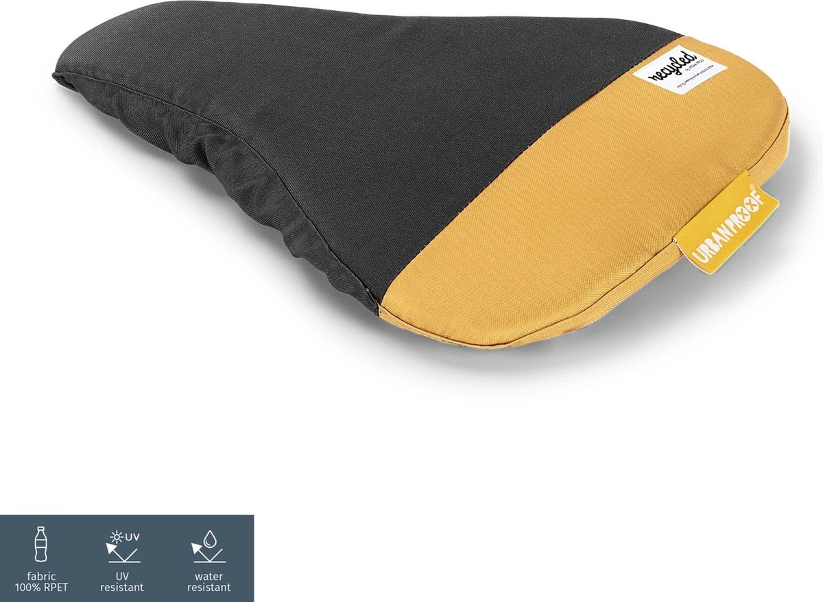 Het grijs met gele Recycled zadeldek van Urban Proof is gemaakt van 100% gerecycled polyetheen (RPET), een verantwoorde keuze dus! Het materiaal is daarnaast ook nog eens waterafstotend, wel zo comfortabel. Door de elastische band blijft het fietszadeldekje goed zitten en is deze universeel te gebruiken.