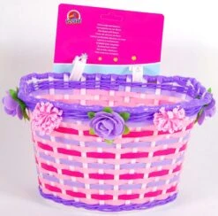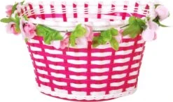 Gevlochten fietsmand met bloemen. Wil jij iets meenemen tijdens jouw fietstocht? Stop het dan in deze handige en mooie fietsmand! Zo kun jij jouw handen aan het stuur houden tijdens je trip. De mand is gemakkelijk te monteren aan iedere kinderfiets.