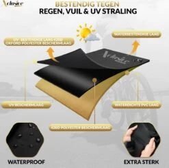 Is alleen de allerbeste bescherming goed genoeg voor je kostbare fiets(en)? Dan is deze fiets- en scooterhoes van Xclusive-lifestyle de beste keus voor jou! Deze hoogwaardige hoes gemaakt van het uiterst sterke stof Oxford 420D, is tot 4x sterker dan de meeste andere hoezen en is daarmee één van de sterktste, zo niet de sterkste op de markt te verkrijgen. Deze hoes is extreem duurzaam, scheurt niet en is bestand tegen alle weersinvloeden en jaargetijden. Bestand tegen harde wind, regen, sneeuw, stof en UV-bestendig. Aan onderzijde voorzien van stevige elastische band met klik-sluiting zodat je fiets(en) of scooter altijd goed afgesloten en beschermd wordt. Uitgevoerd met stevige stalen ogen om je fiets met hoes en al ook op slot te kunnen zetten. Inclusief opbergtas en als extraatje een zadelhoes van dezelfde hoge kwaliteit.
