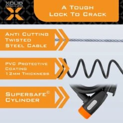 Sluit uw Fiets af met een Gerust hart. Want dit slot is heeft een Extra Stootvaste Kunststof Laag, een Staal Kabel Gehard en Gedraaid, en Supersafe® Cilinder.