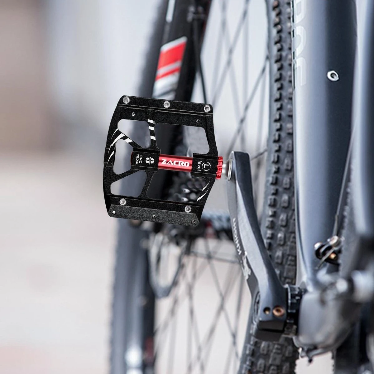 Mooi uiterlijk ontwerp en goede vervormingsbestendige eigenschap, met 3 lagers, Zacro-fietspedaal is sterk, duurzaam. Fietspedaal weegt slechts 352 g (12,4 oz) / paar. Antislip nageloppervlak, sterke grepen, niet langer slippen, om de veiligheid van de rijder te garanderen. Groot platformpedaal is geschikt voor langdurig rijcomfort en trapefficiëntie.